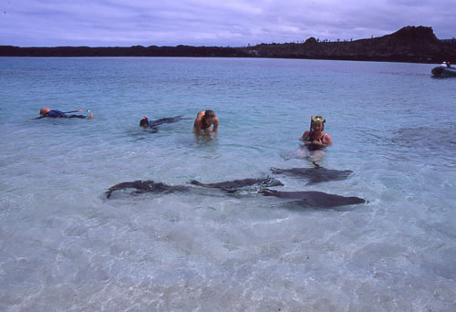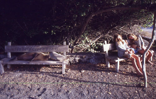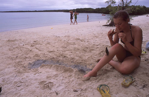 De fleste der kommer til Galapagosøerne oplever kun 3 – 4 dage hvor af størstedelen foregår ombord på en båd. Det er mit 4. besøg på øerne og jeg vidste at der skulle 15 dage til for at nå omkring det vigtigste. De første 7 dage bliver vi nærmest adopteret af en lokal familie. Nelly kører afsted på scooter med vores 3 børn. Vi er på skildpaddetur til hest/muldyr midt i Sta. Cruz’ fugtige højland, hvor vi også er nede i en lavatunnel. Vi er med på søndagspicnic med familien og andre lokale.