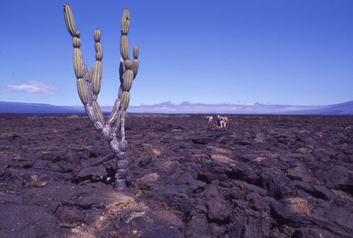 Sørøverbugten Tagus Cove. Bizarre lavaformationer og udslukte vulkaner. Forsøgsstation for landskildpadder. Charles Darwin. Økologisk evolutions-kaffe.